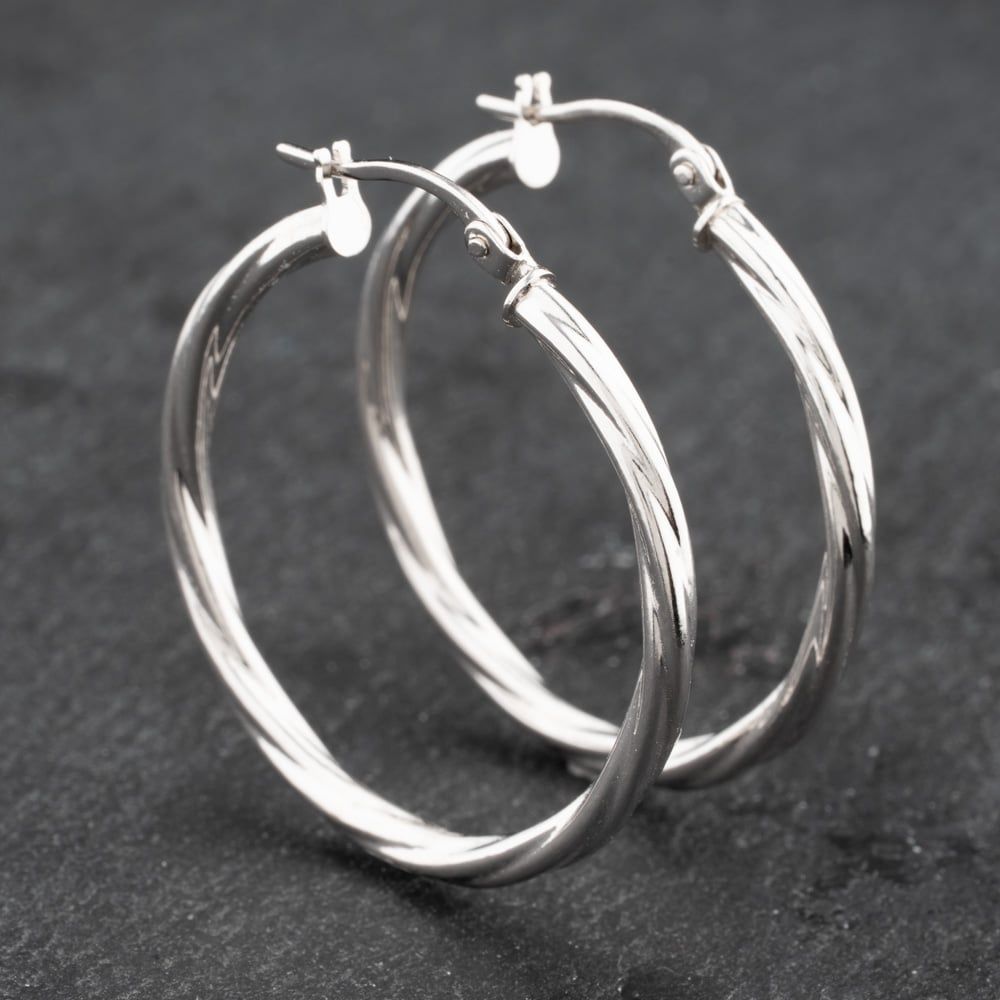 9ct White Gold 29mm Twist Hoop Earrings