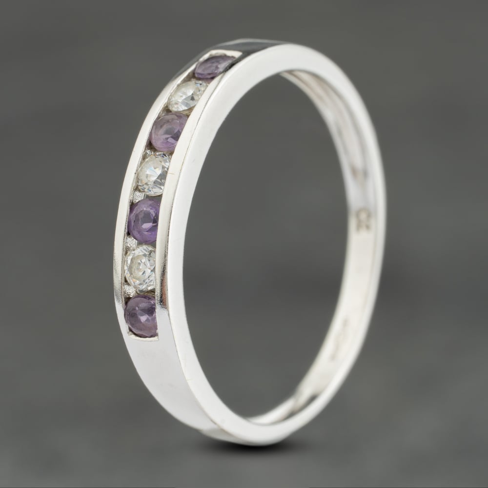 9ct White Gold Amethyst & Cubic Zirconia Half Eternity Ring