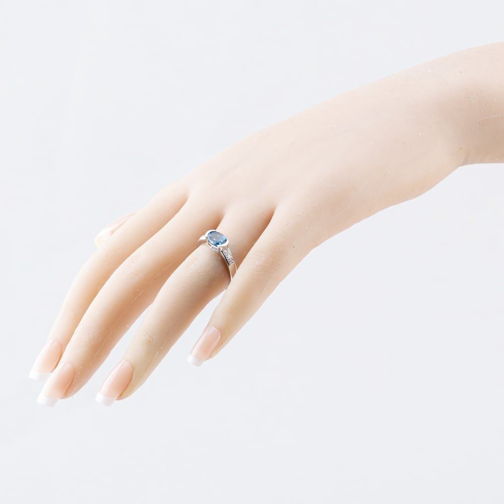 9ct White Gold Blue Topaz & 0.03ct Diamond Oval Cluster Ring