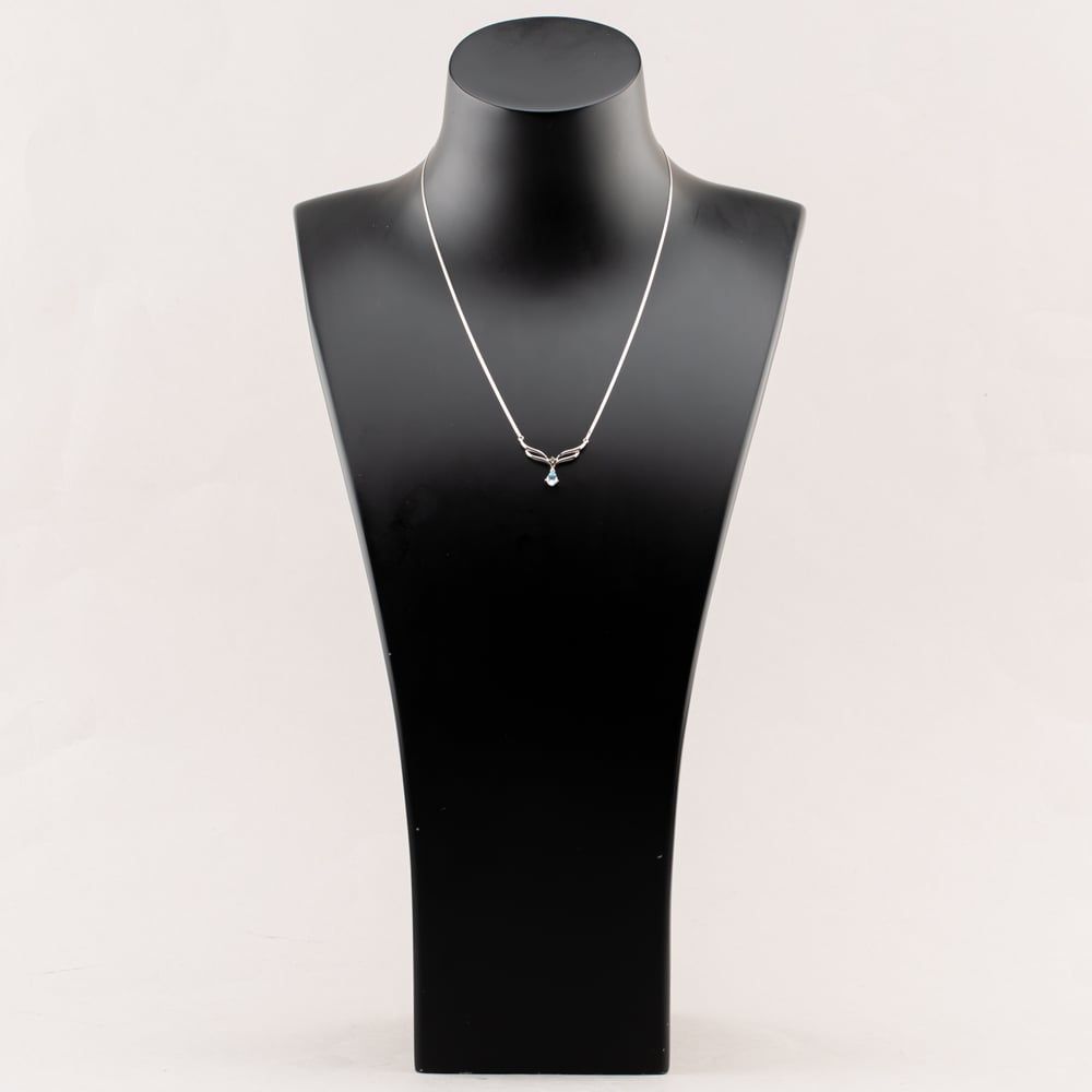 Second Hand 9ct White Gold Blue Topaz & 0.05ct Diamond Pendant & 16 Inch Curb Chain 41142628