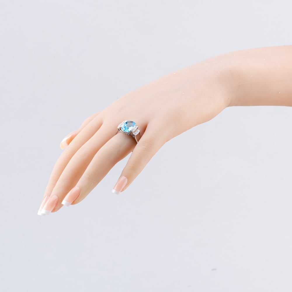 9ct White Gold Blue Topaz & 0.10ct Diamond Tiered Cluster Ring