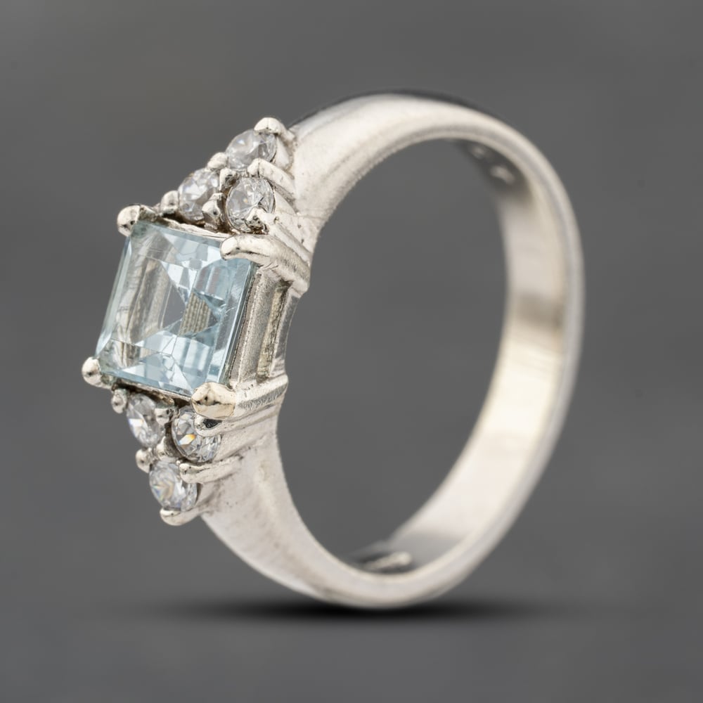 Second Hand 9ct White Gold Blue Topaz & Cubic Zirconia Seven Stone Ring 41103405