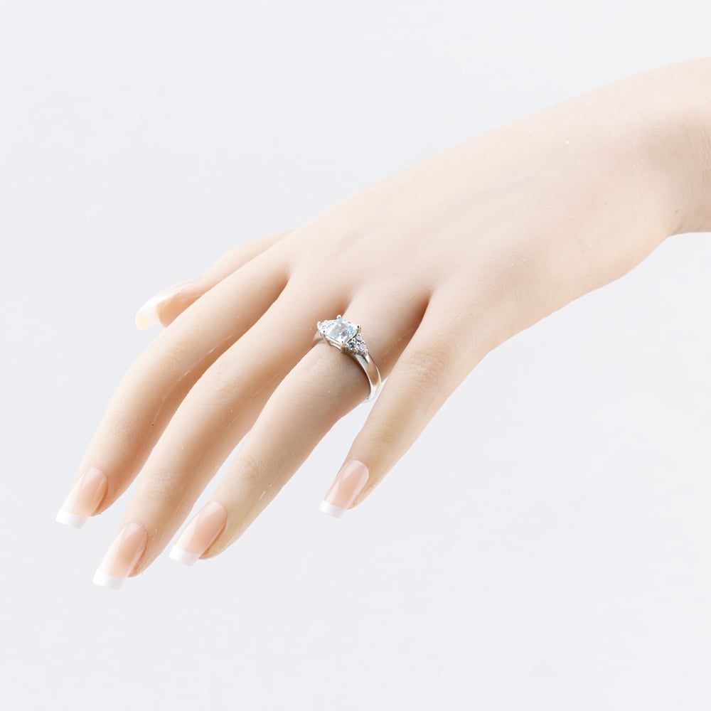 9ct White Gold Blue Topaz & Cubic Zirconia Seven Stone Ring