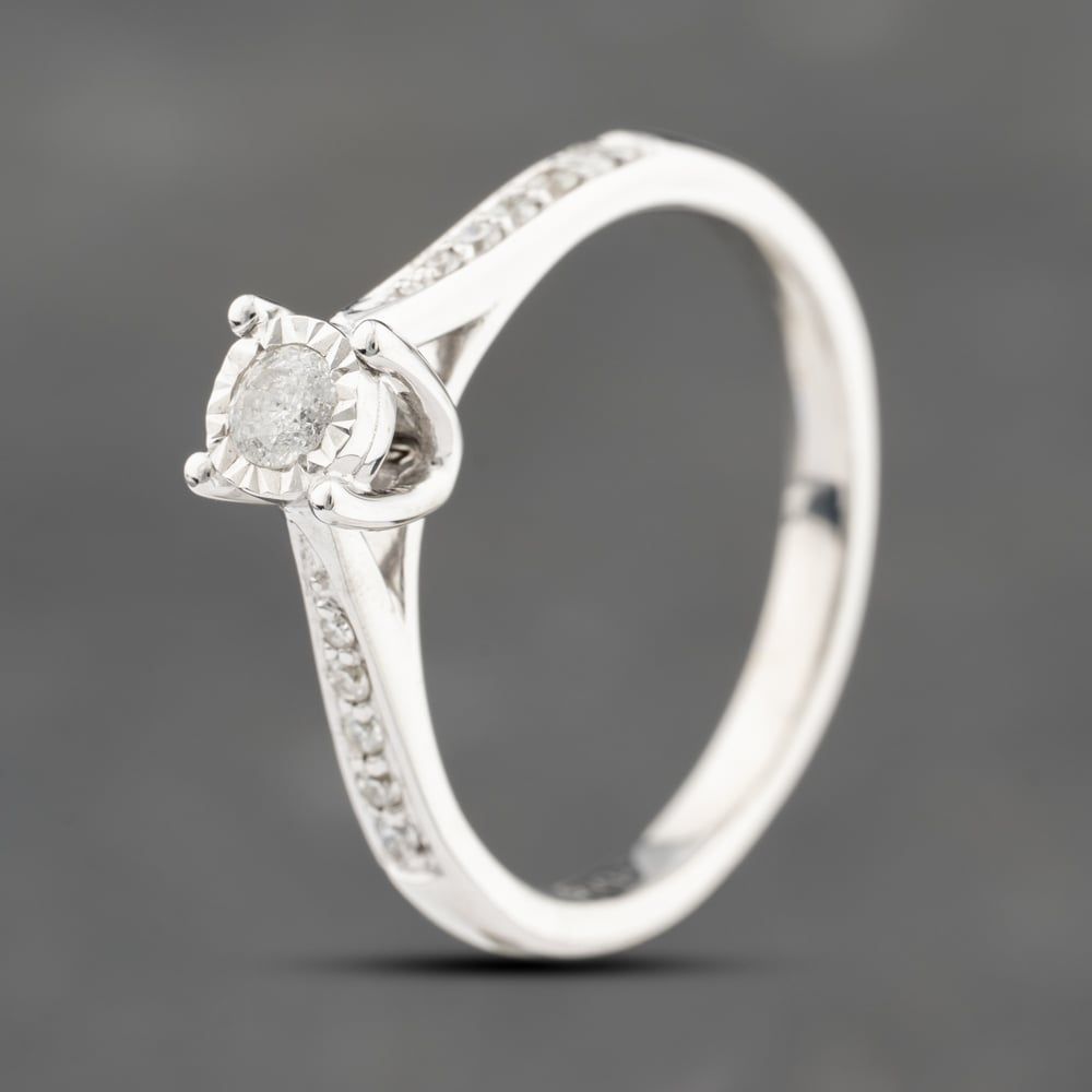 9ct White Gold Brilliant Cut Diamond Shoulder Set Solitaire Ring
