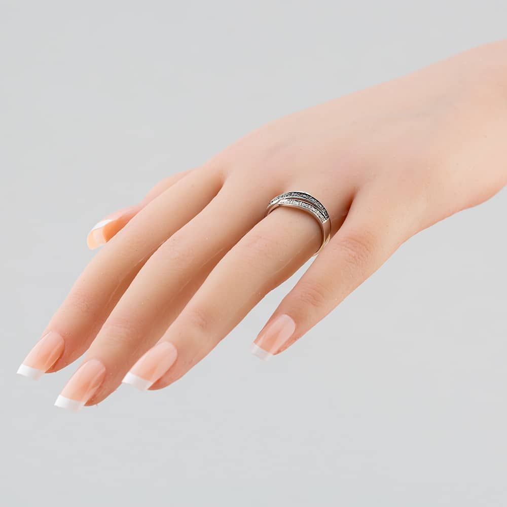 9ct White Gold Brilliant Cut White & Black Diamond three Row Ring