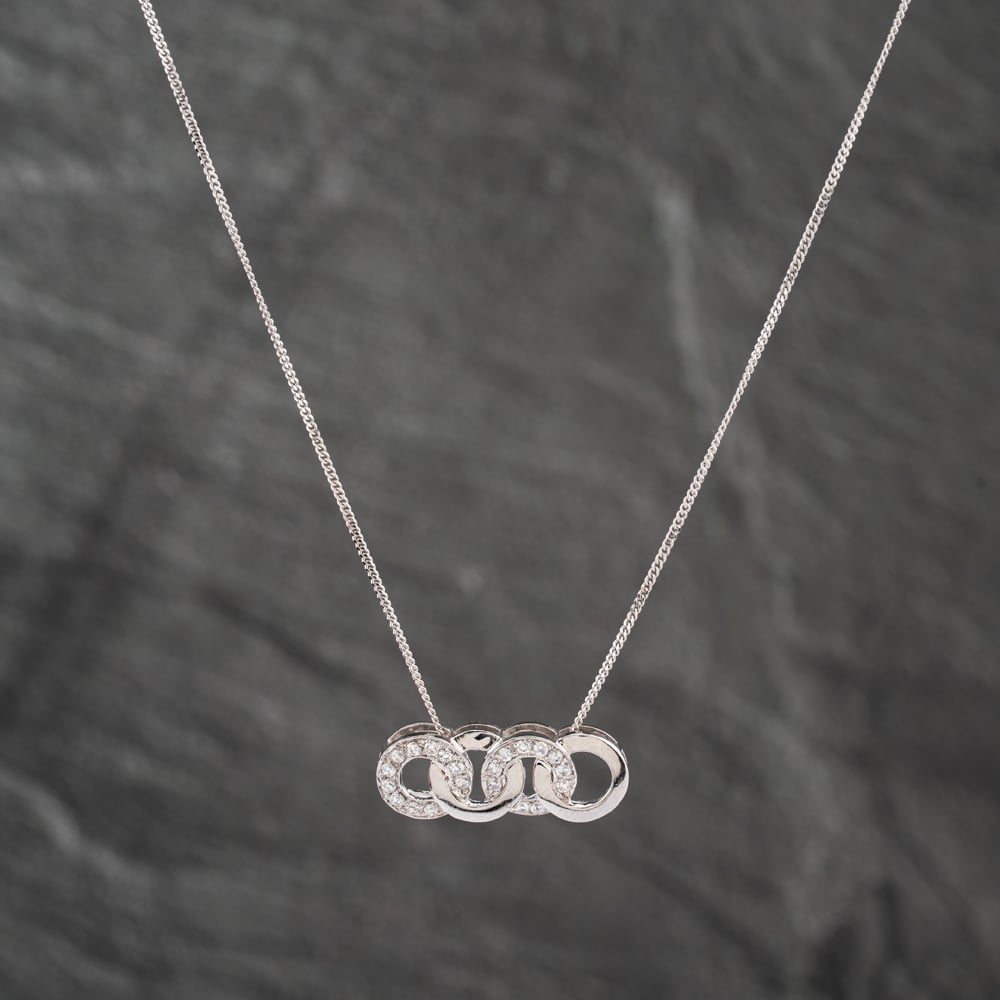 Second Hand 9ct White Gold Cubic Zirconia Circles Gemstone Pendant & 18 Inch Curb Chain 41142632 Second Hand 9ct White Gold Cubic Zirconia Circles Gemstone Pendant & 18 Inch Curb Chain 41142632