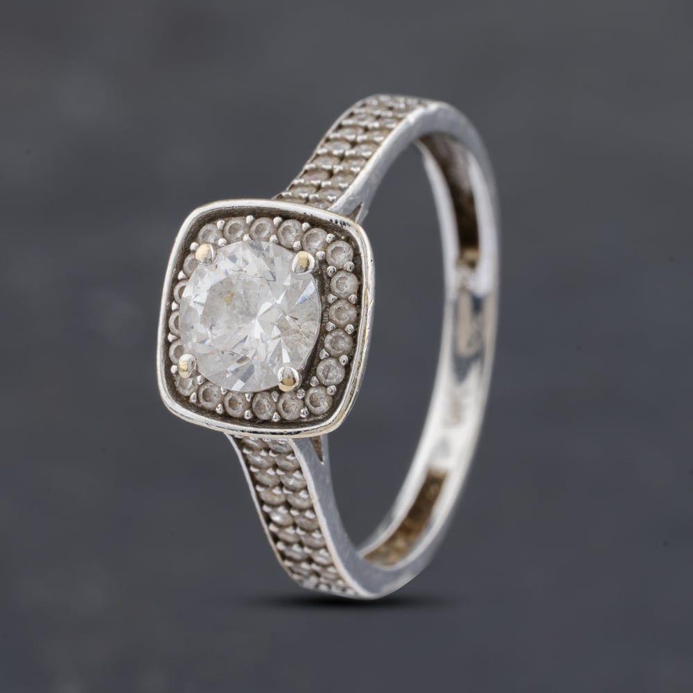 Second Hand 9ct White Gold Cubic Zirconia Halo Cluster Ring 41102953 Second Hand 9ct White Gold Cubic Zirconia Halo Cluster Ring 41102953