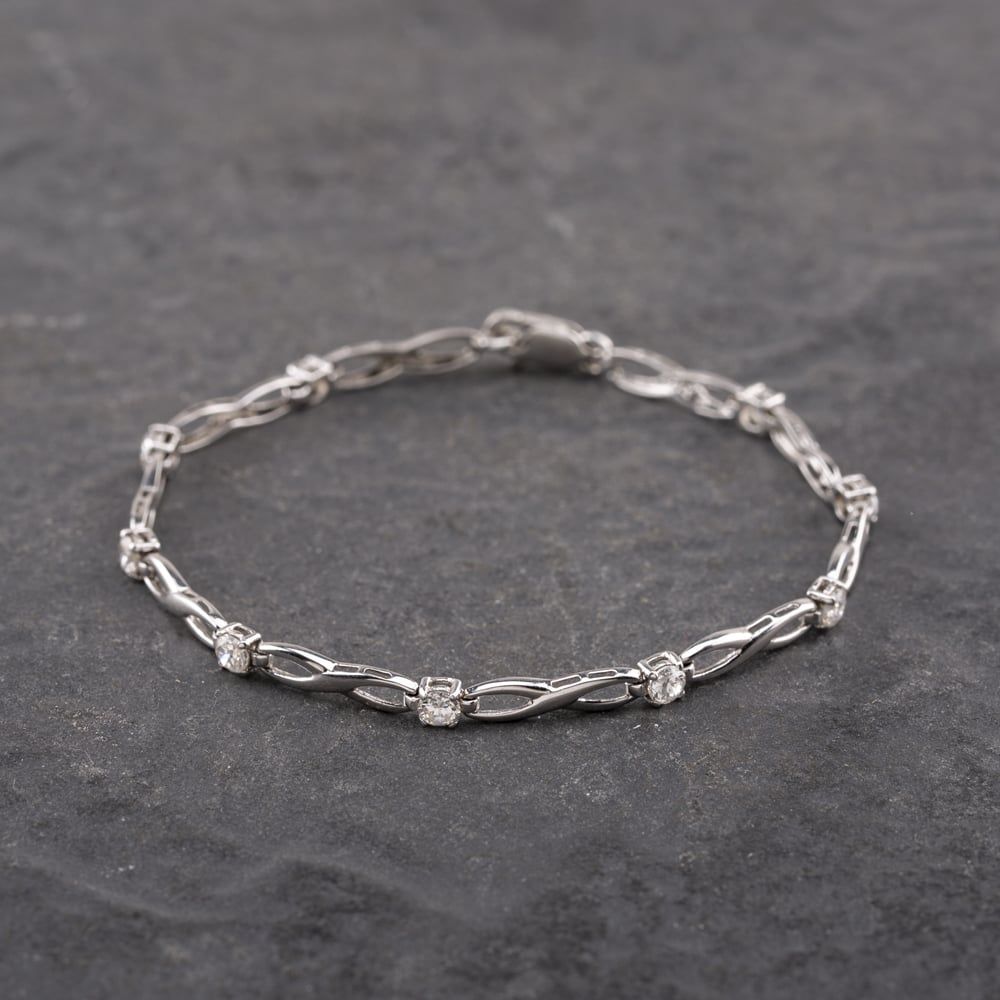 9ct White Gold Cubic Zirconia Infinity 7 Inch Chain Bracelet