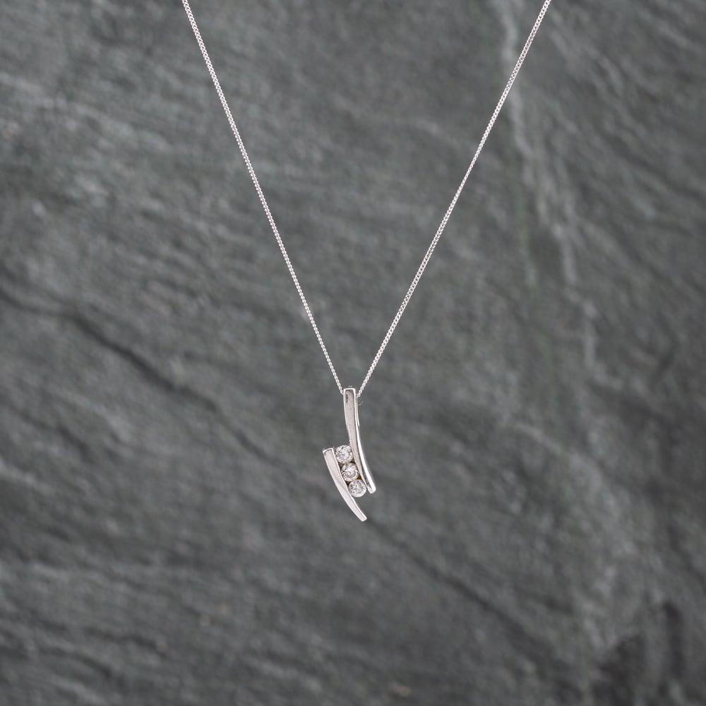 Second Hand 9ct White Gold Cubic Zirconia Pendant & 18 Inch Curb Chain 41142826 Second Hand 9ct White Gold Cubic Zirconia Pendant & 18 Inch Curb Chain 41142826
