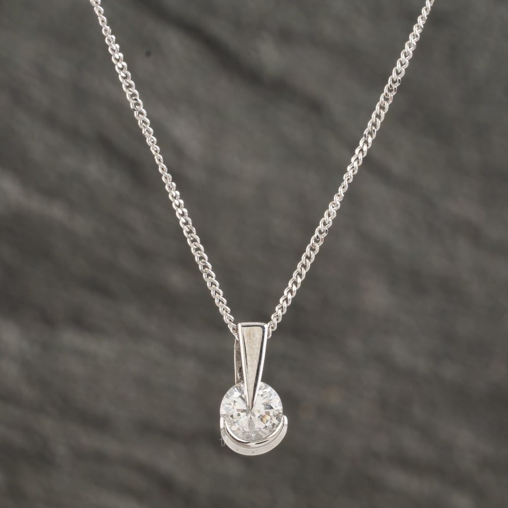 Second Hand 9ct White Gold Cubic Zirconia Round Pendant & 18 Inch Curb Chain 41142244 Second Hand 9ct White Gold Cubic Zirconia Round Pendant & 18 Inch Curb Chain 41142244