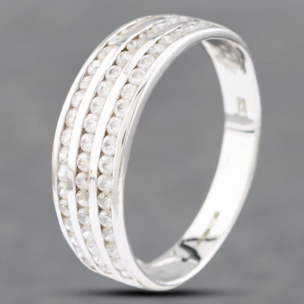 Second Hand 9ct White Gold Cubic Zirconia Three Row Ring 41102575