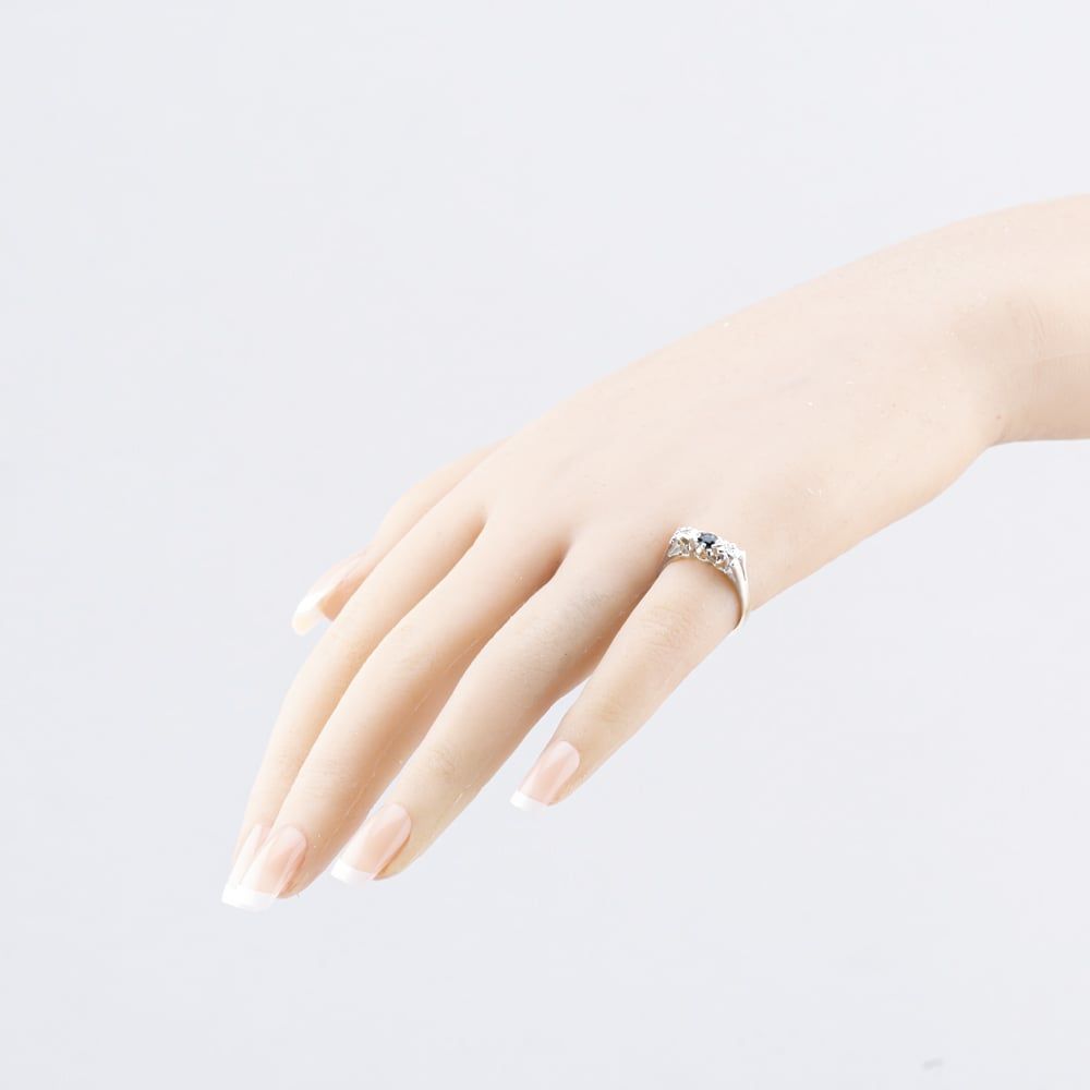 Second Hand 9ct White Gold Diamond & 0.03ct Brilliant Cut Sapphire Three Stone Ring 41383663 Second Hand 9ct White Gold Diamond & 0.03ct Brilliant Cut Sapphire Three Stone Ring 41383663