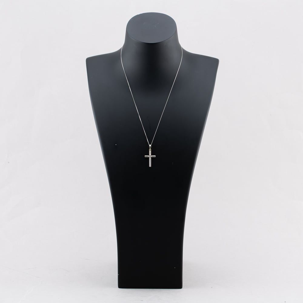Second Hand 9ct White Gold Diamond Cross Pendant & 18 Inch Curb Chain 41142902 Second Hand 9ct White Gold Diamond Cross Pendant & 18 Inch Curb Chain 41142902