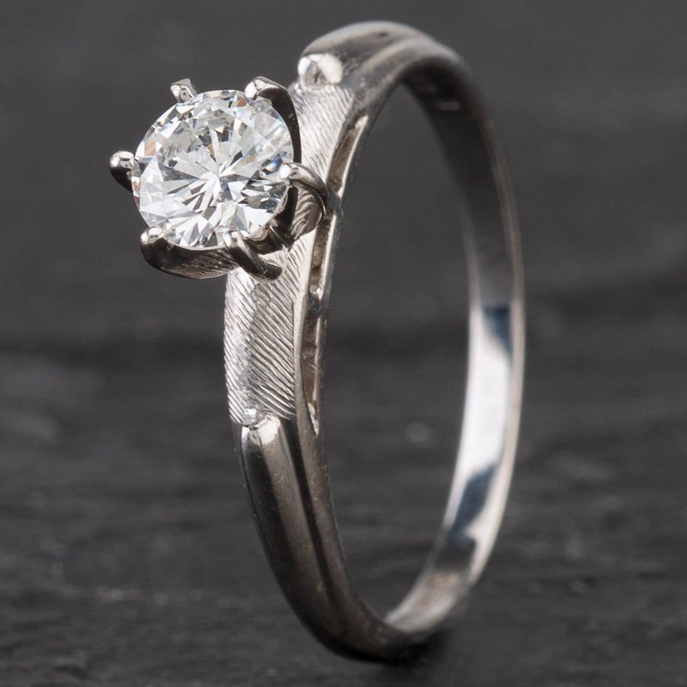 9ct White Gold 6 Claw Brilliant Cut Diamond Single Stone Ring With Textured Shoulders. All Diamonds Are Natural Tested Stones With A Total Weight 0.45ct