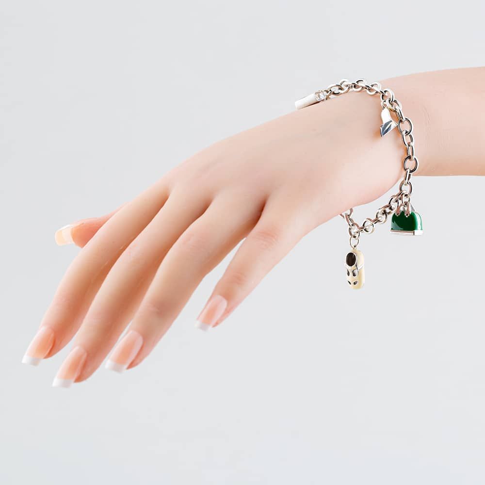 9ct White Gold Hand Bags & Shoes 7.5 Inch Charm Bracelet