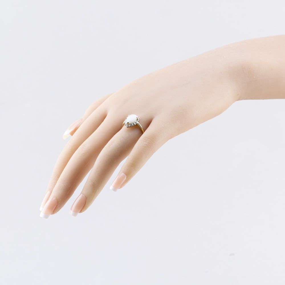 9ct White Gold Opal & Diamond Pear Shaped Cluster Ring