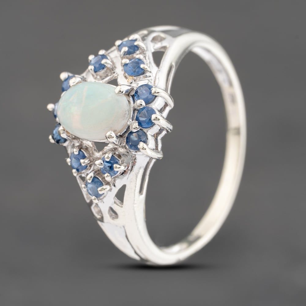 Second Hand 9ct White Gold Opal & Sapphire Cluster Ring 41102535 Second Hand 9ct White Gold Opal & Sapphire Cluster Ring 41102535