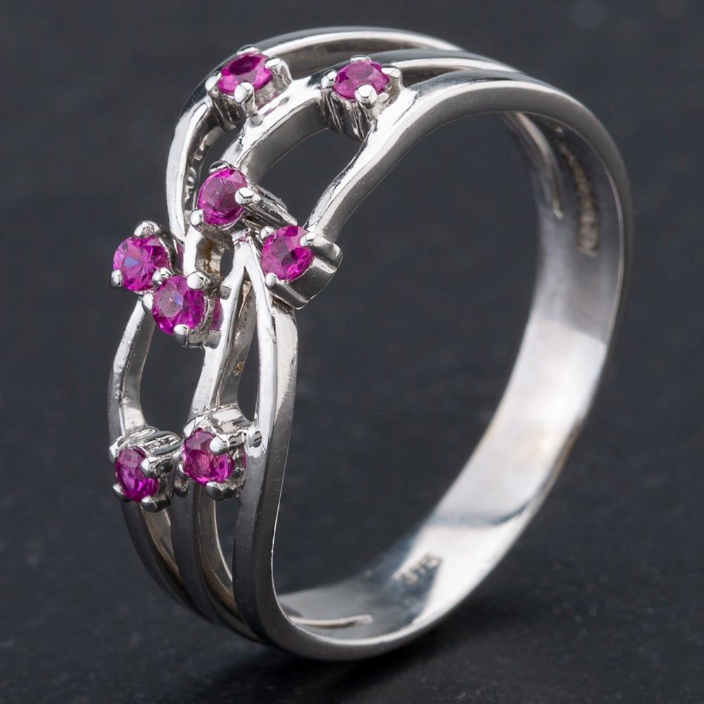 9ct White Gold Pink Sapphire Set 8 Stone Fancy Open Spray Style Dress Ring