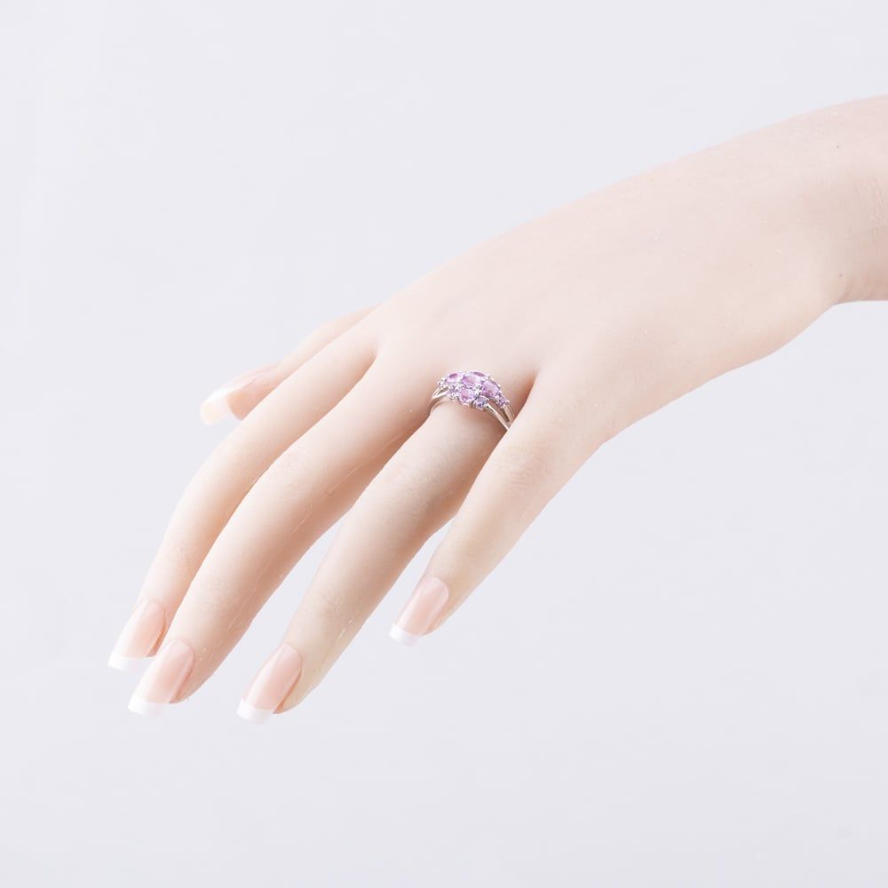 9ct White Gold Pink Sapphire & Diamond Cluster Ring