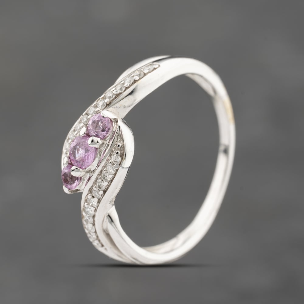 9ct White Gold Pink Sapphire & Diamond Shoulders Twist Dress Ring