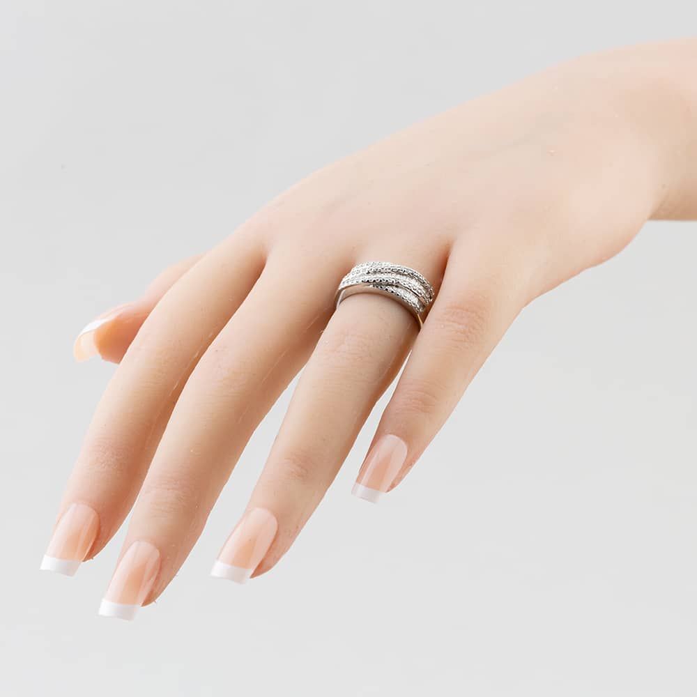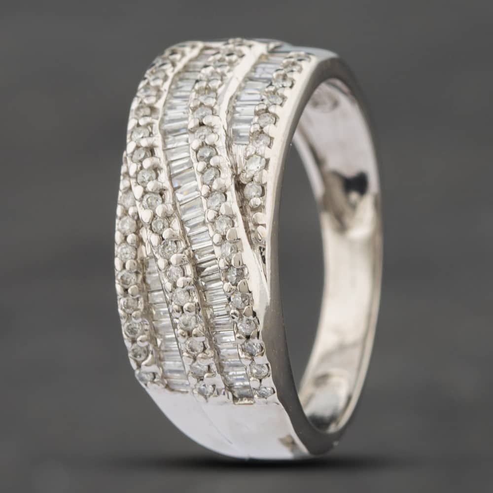 9ct White Gold Round & Baguette Cut Diamond Crossover Five Row Ring