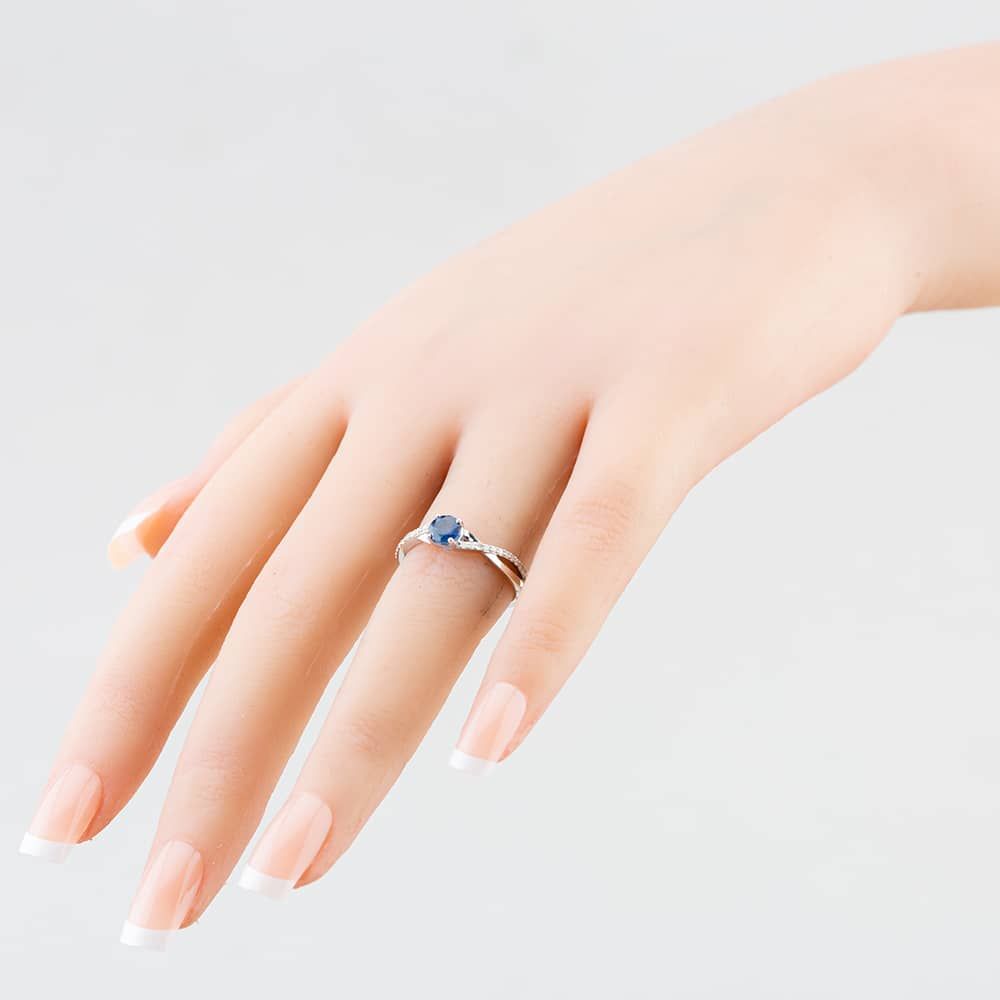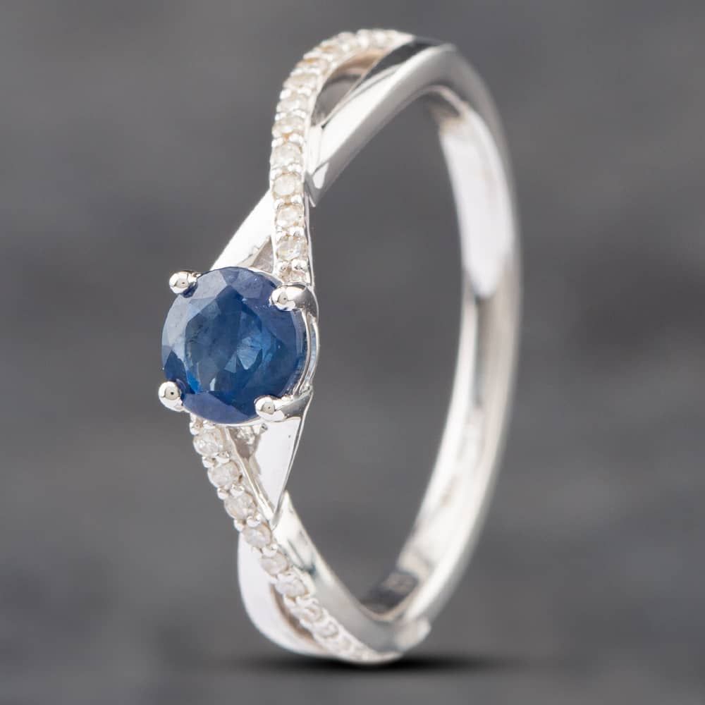 9ct White Gold Sapphire & 0.12ct Single Cut Diamond Crossover Shoulders Dress Ring
