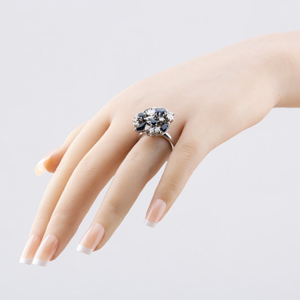 9ct White Gold Sapphire & Diamond Large Multi-Stone Cluster Ring