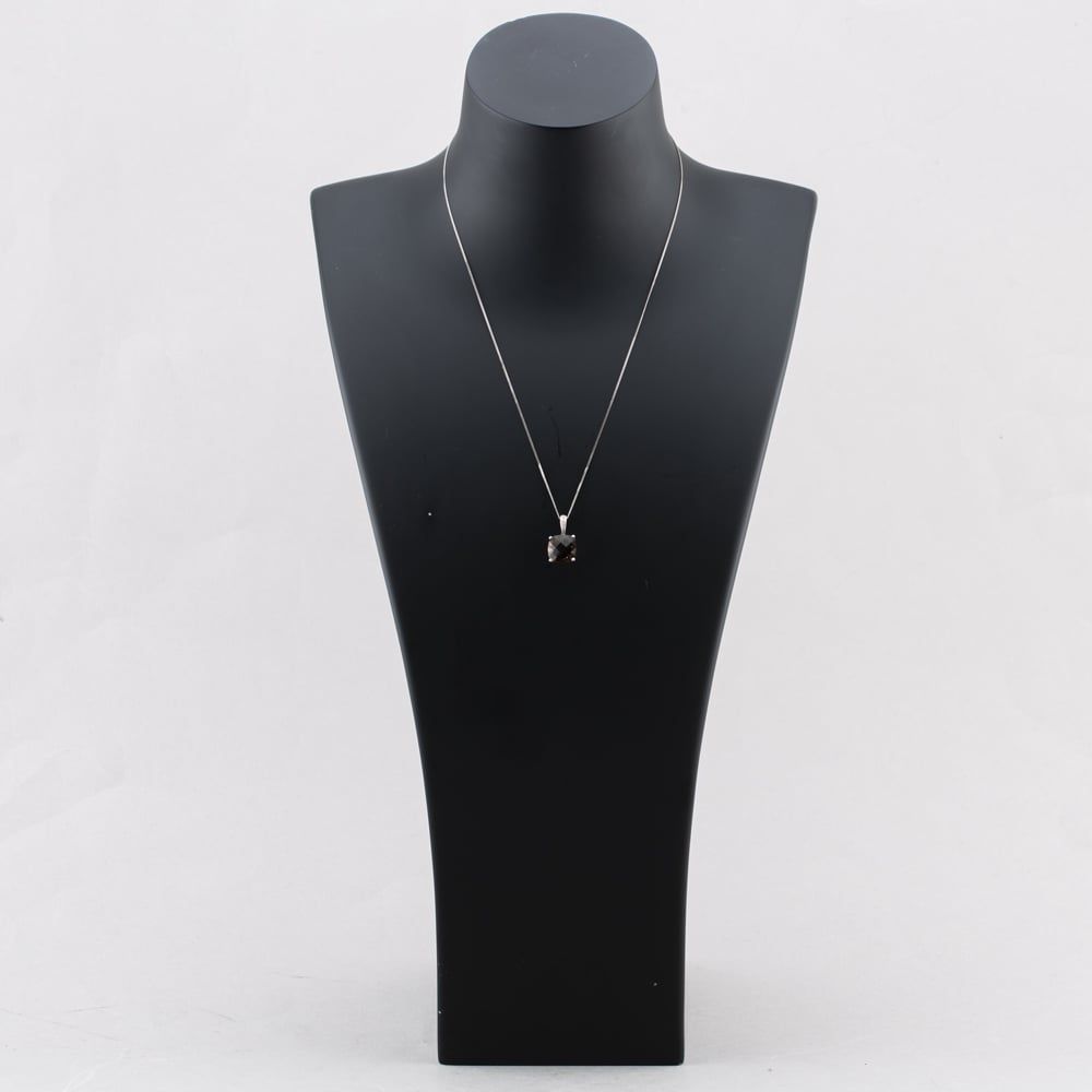 Second Hand 9ct White Gold Smoky Quartz & Diamond Cushion Shaped Pendant & 18 Inch Curb Chain 41142891 Second Hand 9ct White Gold Smoky Quartz & Diamond Cushion Shaped Pendant & 18 Inch Curb Chain 41142891