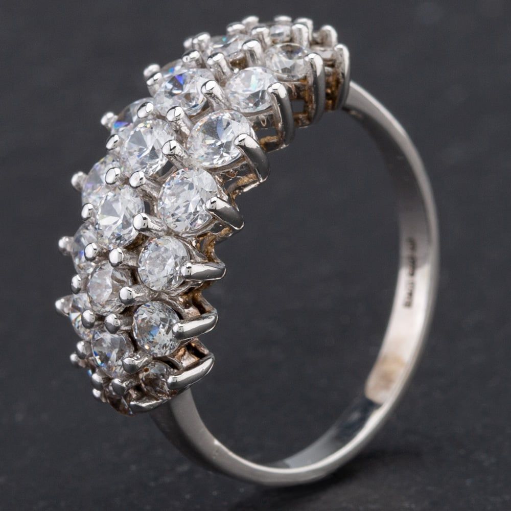9ct White Gold Stunning Triple Row Cubic Zirconia Cluster Ring