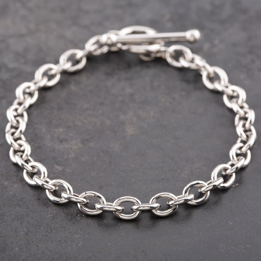 9ct White Gold T-Bar 7.5 Inch Belcher Chain Bracelet