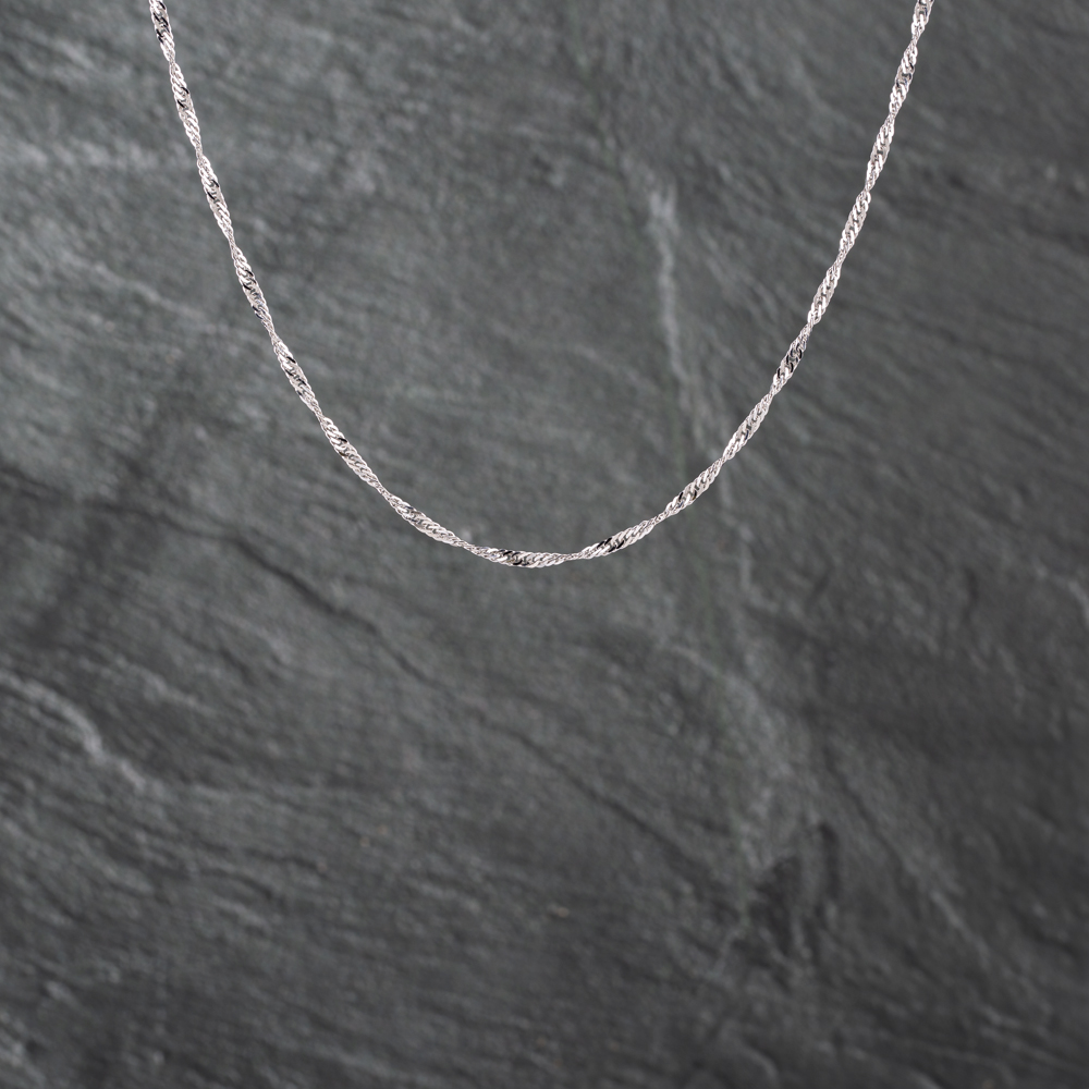 9ct White Gold Twisted 18 Inch Curb Chain