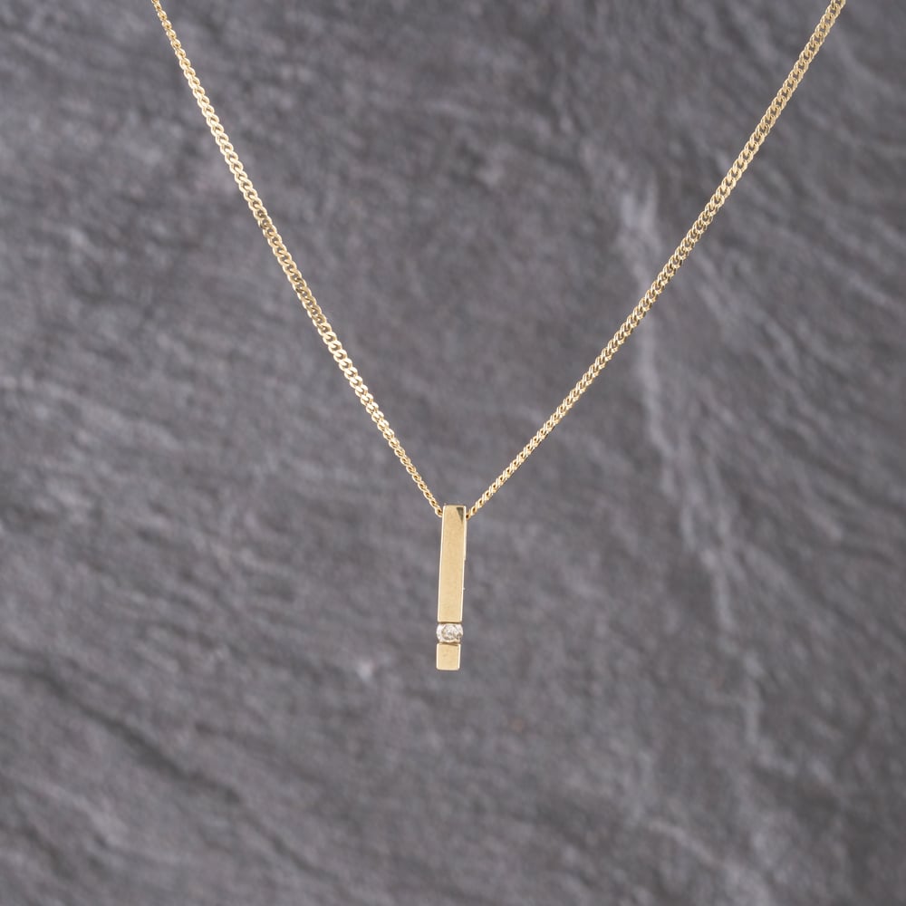 Second Hand 9ct Yellow Gold 0.05ct Diamond Tension Set Bar Drop Pendant & 16 Inch Curb Chain 41143164 Second Hand 9ct Yellow Gold 0.05ct Diamond Tension Set Bar Drop Pendant & 16 Inch Curb Chain 41143164