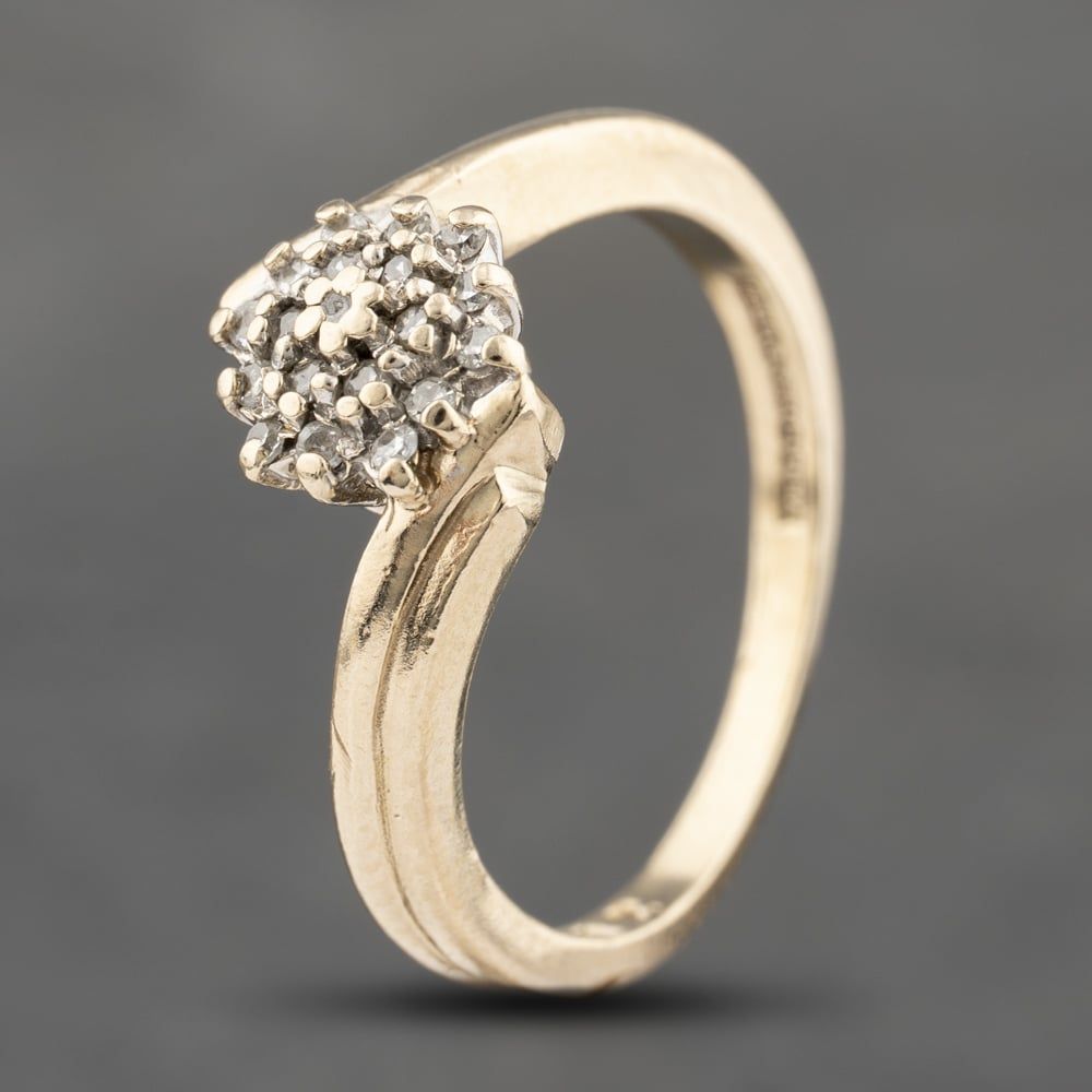 9ct Yellow Gold 0.12ct Diamond Twist Cluster Ring