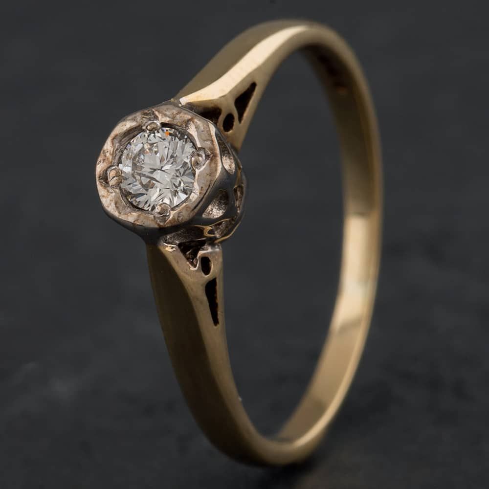 Second Hand9ct Yellow Gold 0.15ct Brilliant Cut Diamond Solitaire Ring 4138781