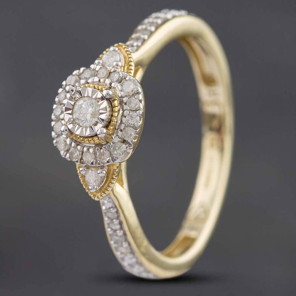9ct Yellow Gold 0.17ct Brilliant Cut Diamond Cluster Ring