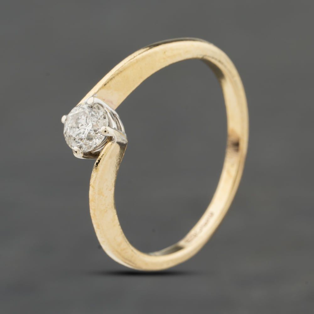 9ct Yellow Gold 0.25ct Brilliant Cut Diamond Four Claw Twist Solitaire Ring