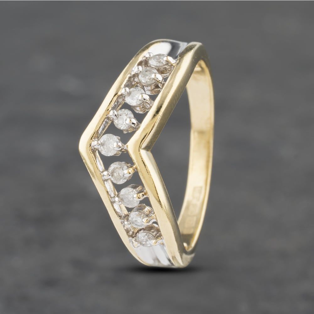 9ct Yellow Gold 0.25ct Brilliant Cut Diamond Nine Stone Half Wishbone Ring