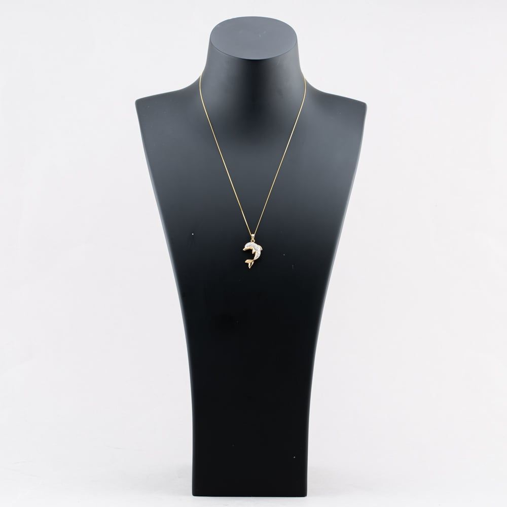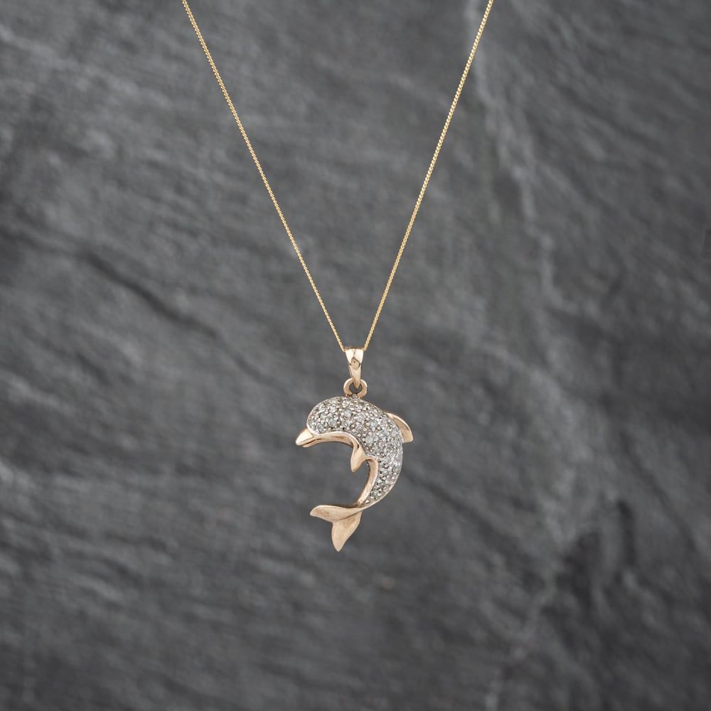 Second Hand 9ct Yellow Gold 0.25ct Diamond Dolphin Pendant & 18 Inch Curb Chain 41142829 Second Hand 9ct Yellow Gold 0.25ct Diamond Dolphin Pendant & 18 Inch Curb Chain 41142829