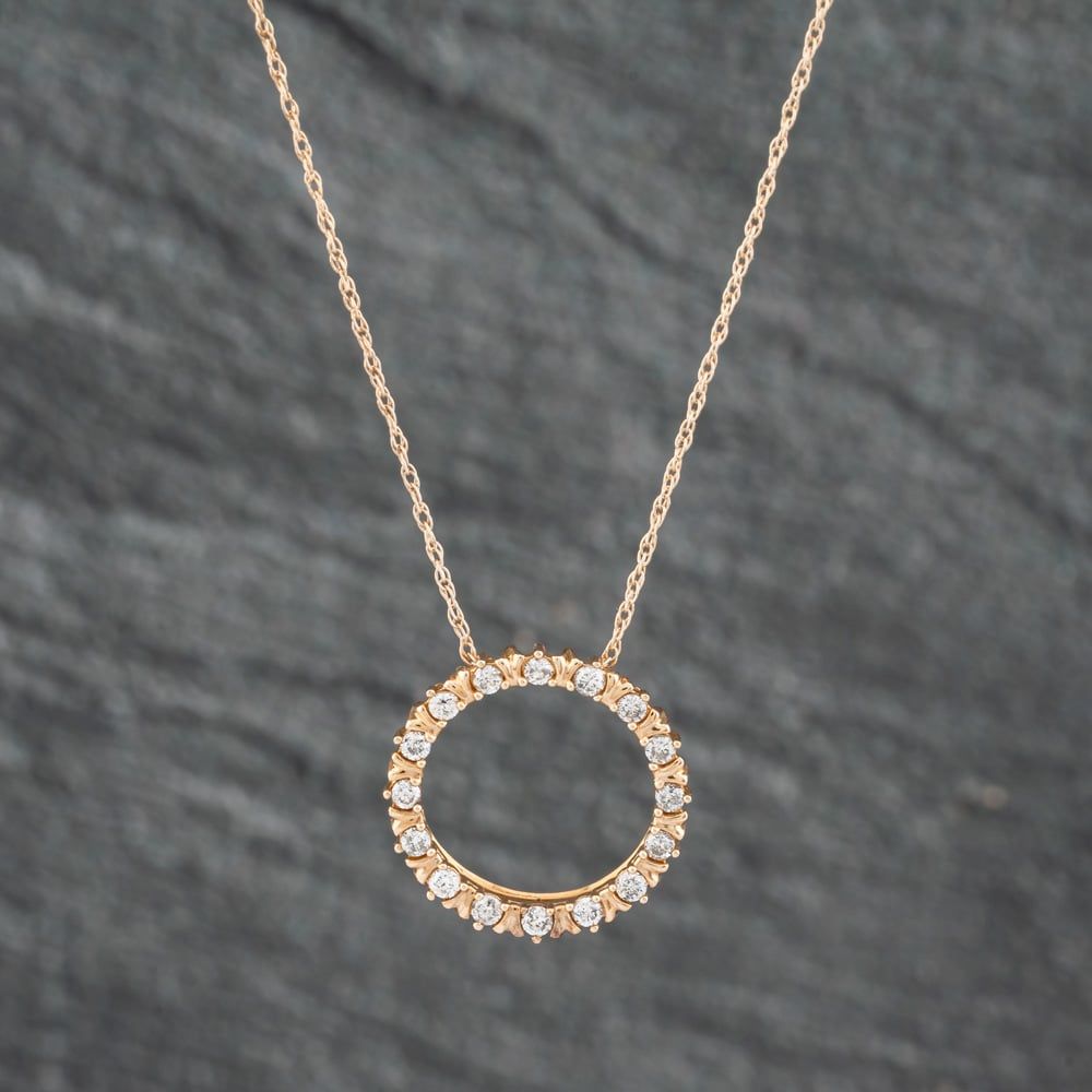 9ct Yellow Gold 0.25ct Diamond Open Circle Pendant & 18 Inch Prince Of Wales Chain