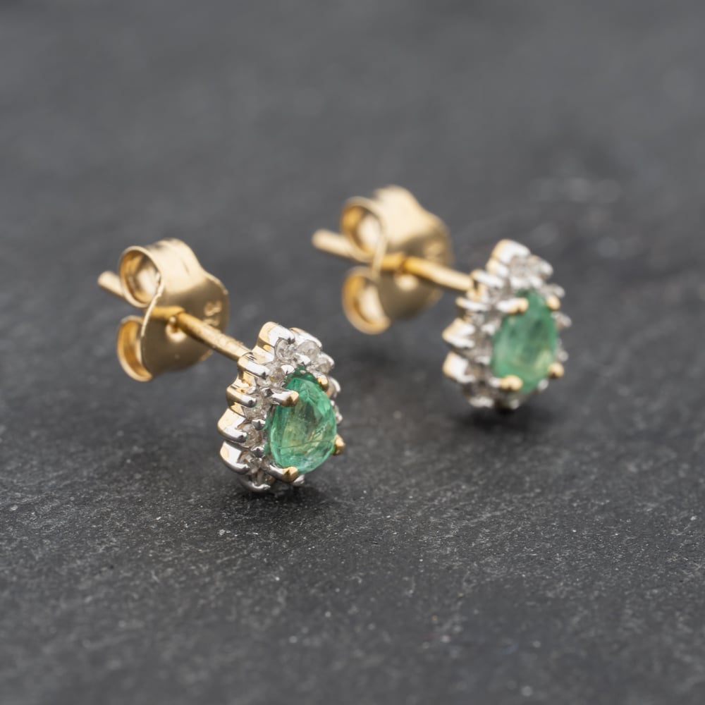 Second Hand 9ct Yellow Gold 0.25ct Emerald & Diamond Teardrop Cluster 6.6mm Stud Earrings 43171295 Second Hand 9ct Yellow Gold 0.25ct Emerald & Diamond Teardrop Cluster 6.6mm Stud Earrings 43171295