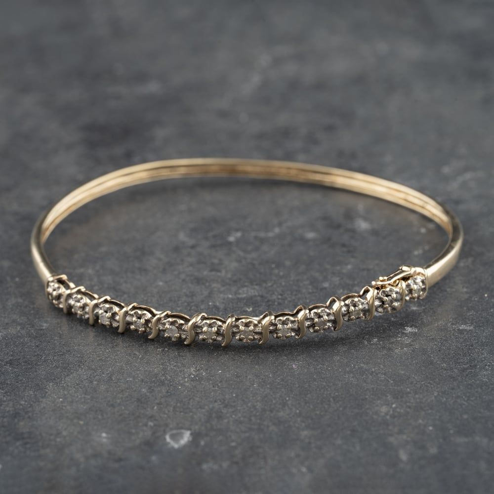 9ct Yellow Gold 0.25ct Twelve Stone Standard Simple Bangle