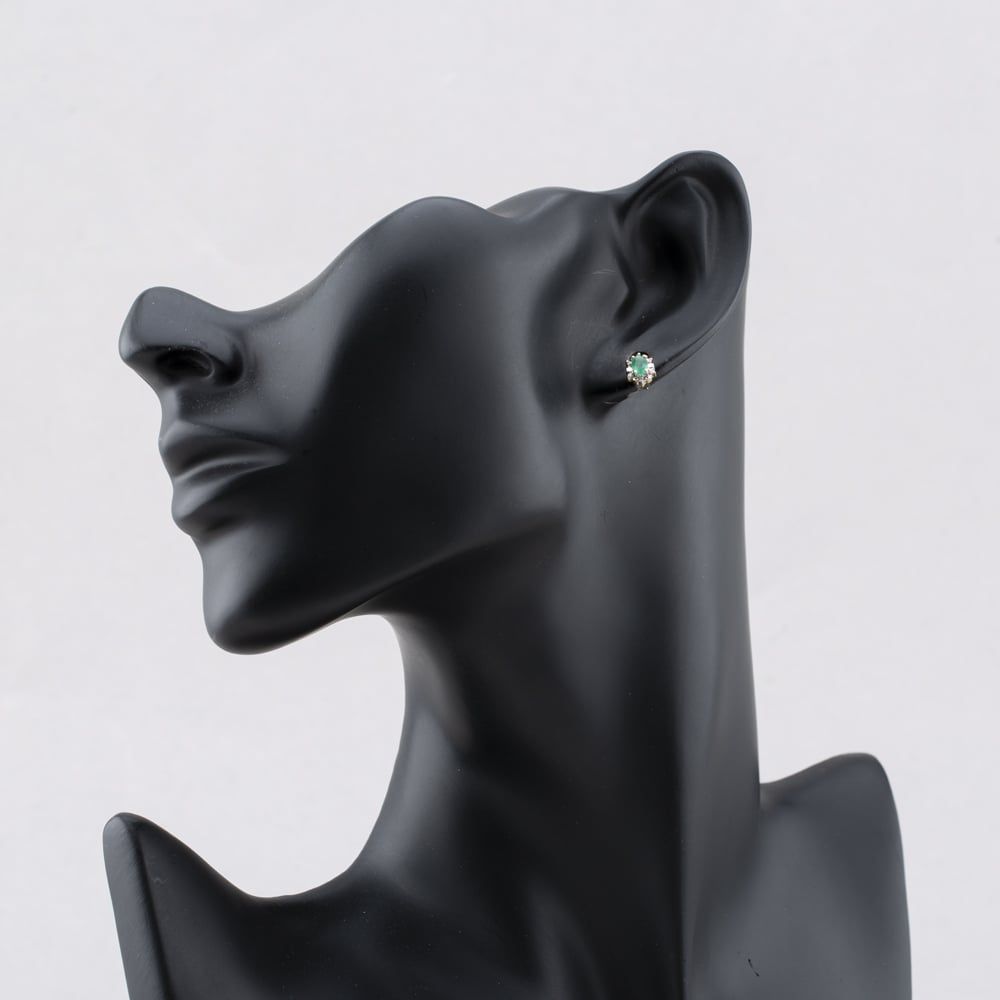 Second Hand 9ct Yellow Gold 0.28ct Emerald & Diamond Oval Cluster Stud Earrings 43171304