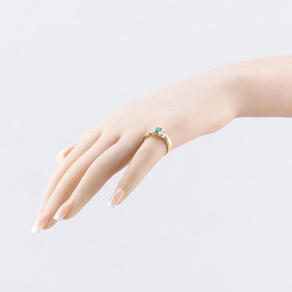 9ct Yellow Gold 0.33ct Emerald & 0.01ct Brilliant Cut Diamond three Stone Ring