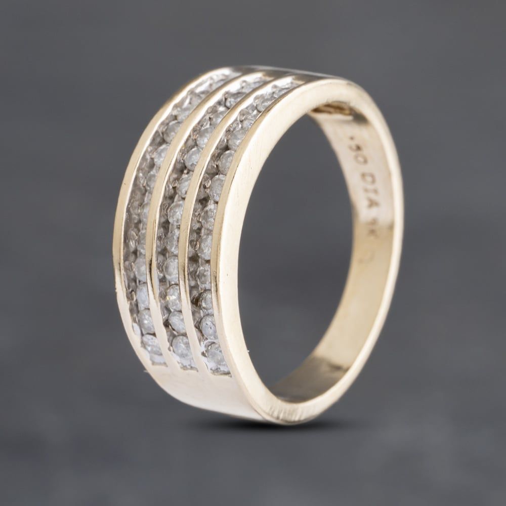 9ct Yellow Gold 0.50ct Brilliant Cut Diamond three Row Ring