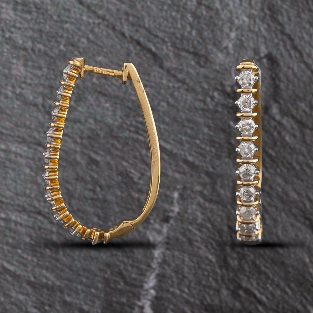 9ct Yellow Gold 1.00ct Brilliant Cut Diamond Hoop Earrings