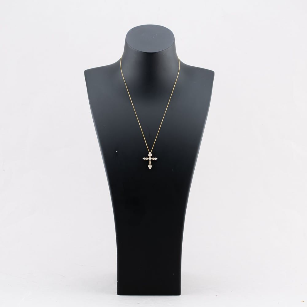 Second Hand 9ct Yellow Gold 1.00ct Brilliant Cut Diamond Openwork Cross Pendant & 18 Inch Curb Chain 41142660 Second Hand 9ct Yellow Gold 1.00ct Brilliant Cut Diamond Openwork Cross Pendant & 18 Inch Curb Chain 41142660