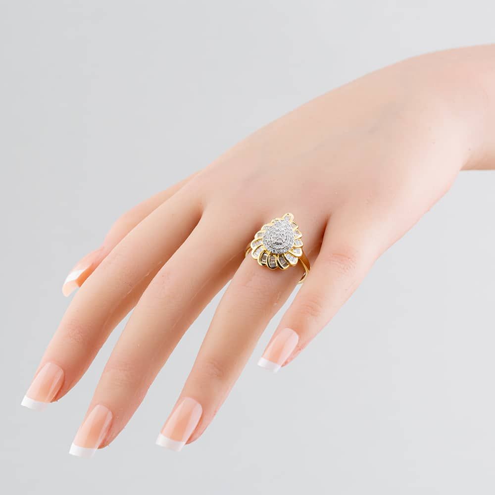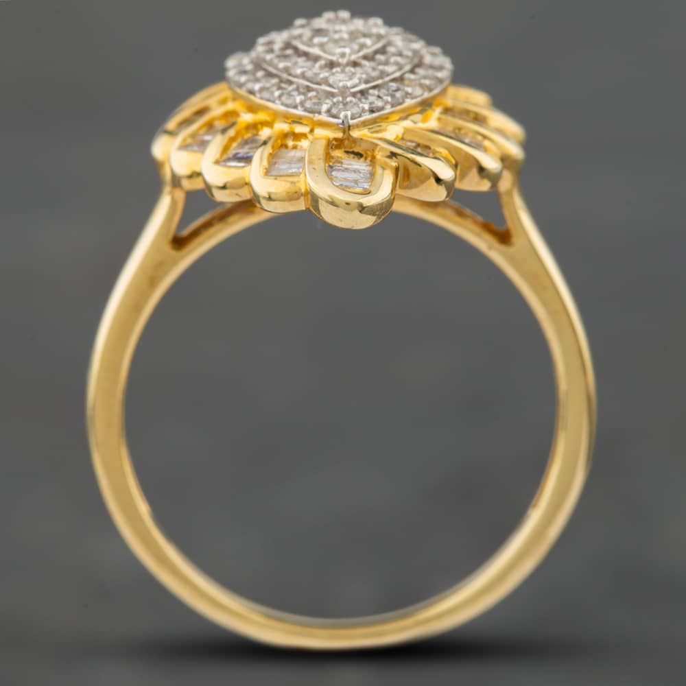 9ct Yellow Gold 1.00ct Diamond Scalloped Edge Cluster Ring