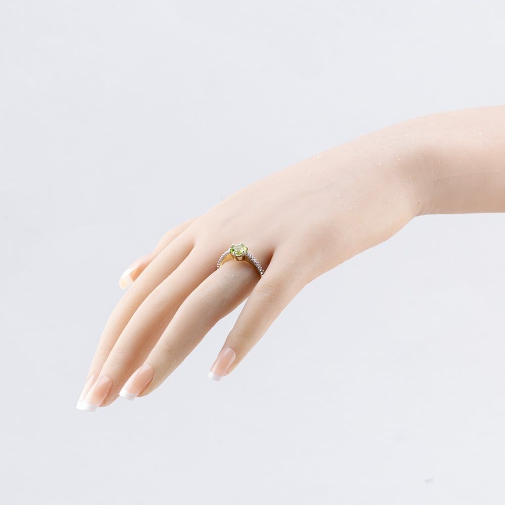 9ct Yellow Gold 1.00ct Peridot & 0.17ct Brilliant Cut Diamond Round Dress Ring
