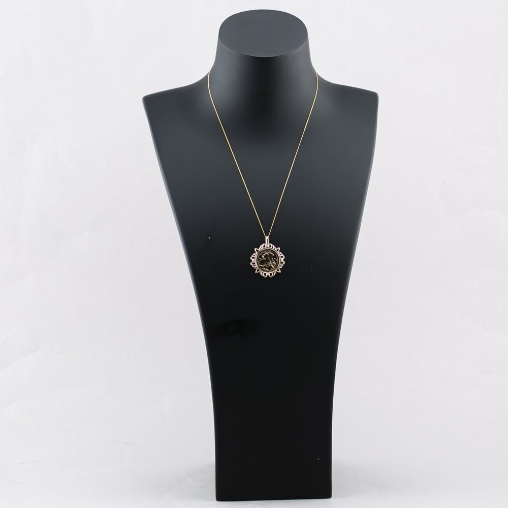 9ct Yellow Gold 1903 George V Half Sovereign Filigree Coin Keeper Pendant & 18 Inch Curb Chain