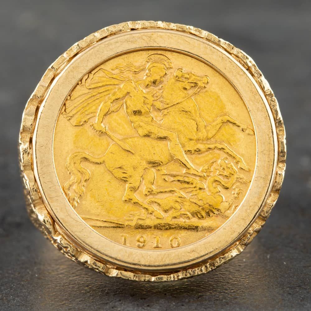Second Hand 9ct Yellow Gold 1910 Half Sovereign Coin Ring 41201009BND Second Hand 9ct Yellow Gold 1910 Half Sovereign Coin Ring 41201009BND